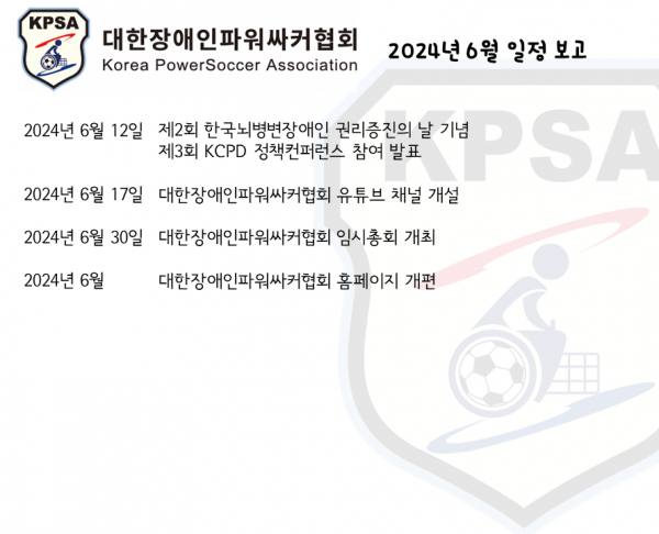 [일정결과]대한장애인파워싸커협회 일정보고 6월 페이지 정보 작성자 관리자 댓글 0건 조회 527회 작성일 24-07-15 15:11 목록 답변 본문 이전글[보도자료]240801_대한장애인파워싸커협회 쿠팡 후원 2024 쿠팡플레이 시리즈 경기 관람 24.08.01 다음글[홍보] 대한장애인파워싸커협회 Youtube(유튜브) 채널을 개설했습니다. 24.06.17 댓글 0 댓글목록 등록된 댓글이 없습니다.